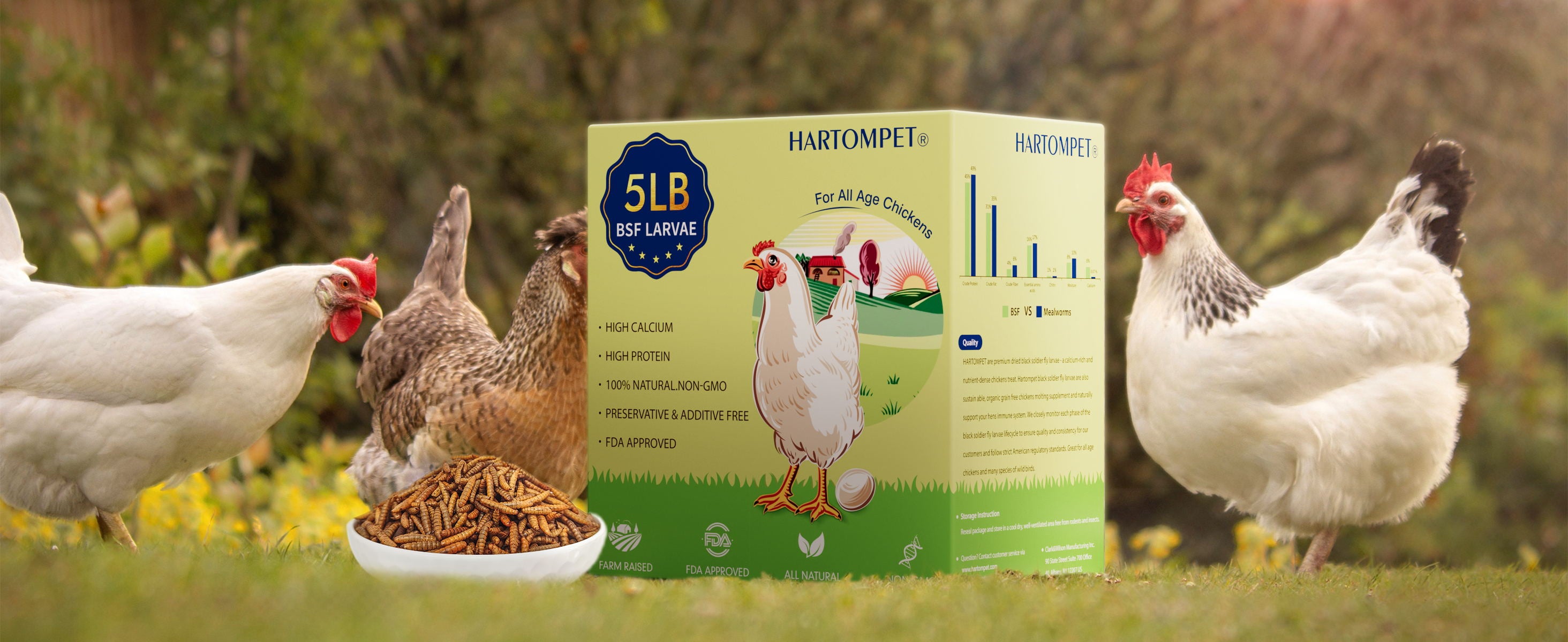 A: We offer economic chicken feed solutions, including Black Soldier Fly (BSF) larvae, tailored for a few days' worth of feeding. Our products also include an Automatic Chicken Coop Door for enhanced safety, chicken leg bands, and automated life sign detection for proactive health monitoring.