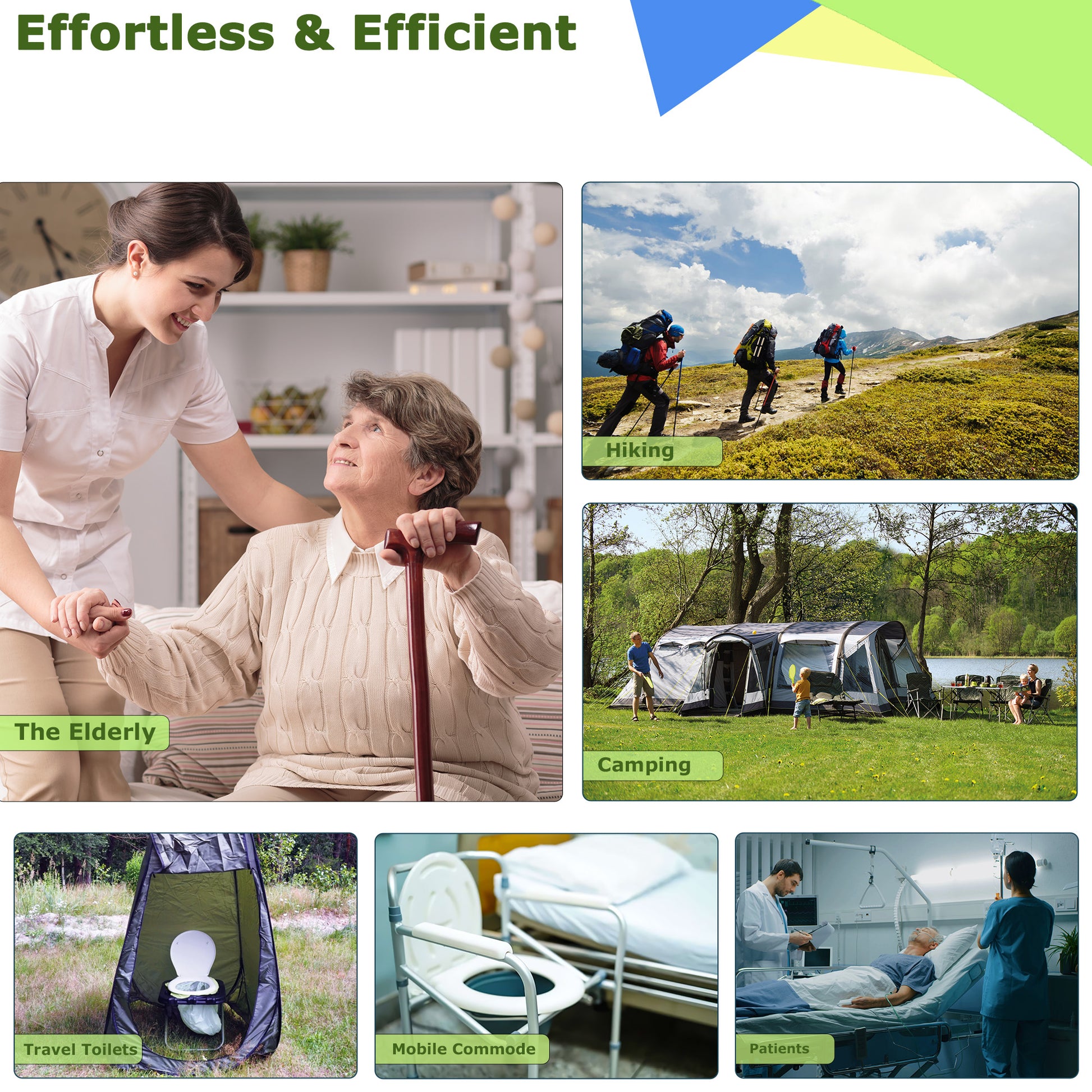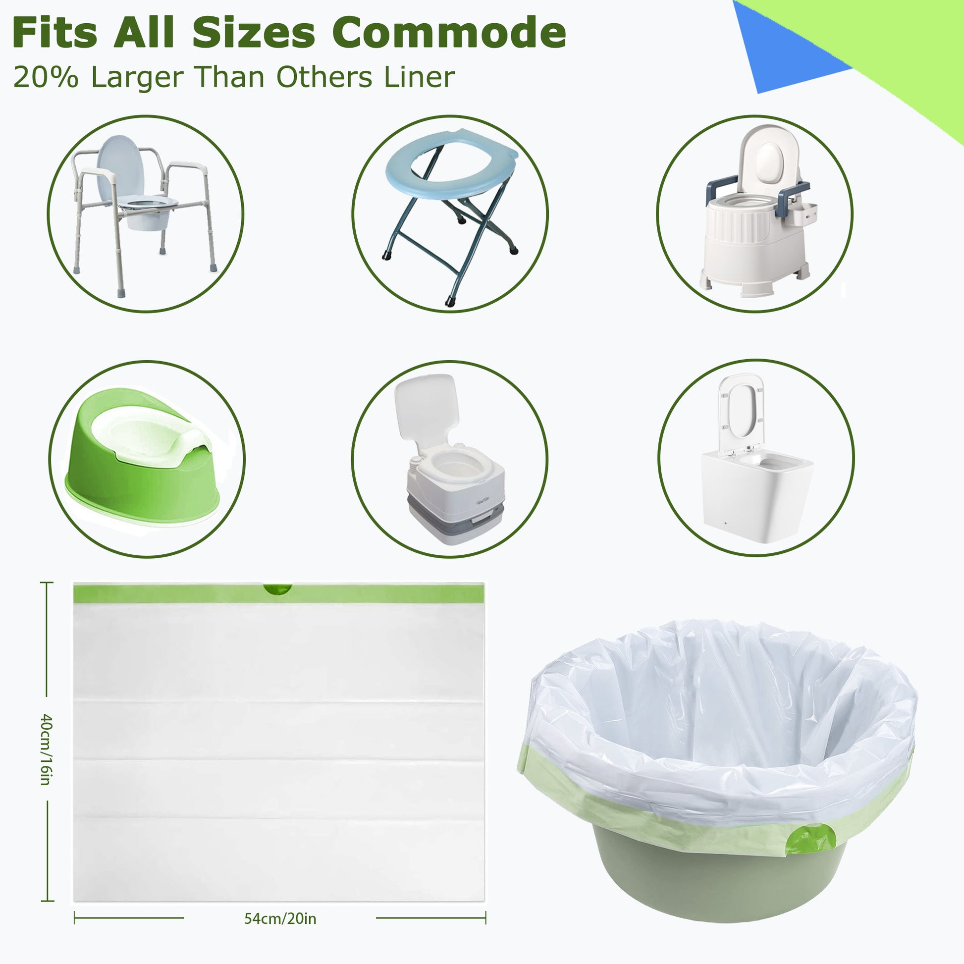 💧 100% Leak-Proof: With a leak-proof design & thicken LDPE material, features a robust seal to prevent leaks, keeping the commode bucket consistently dry. The reinforced drawstring adds an extra layer of security.