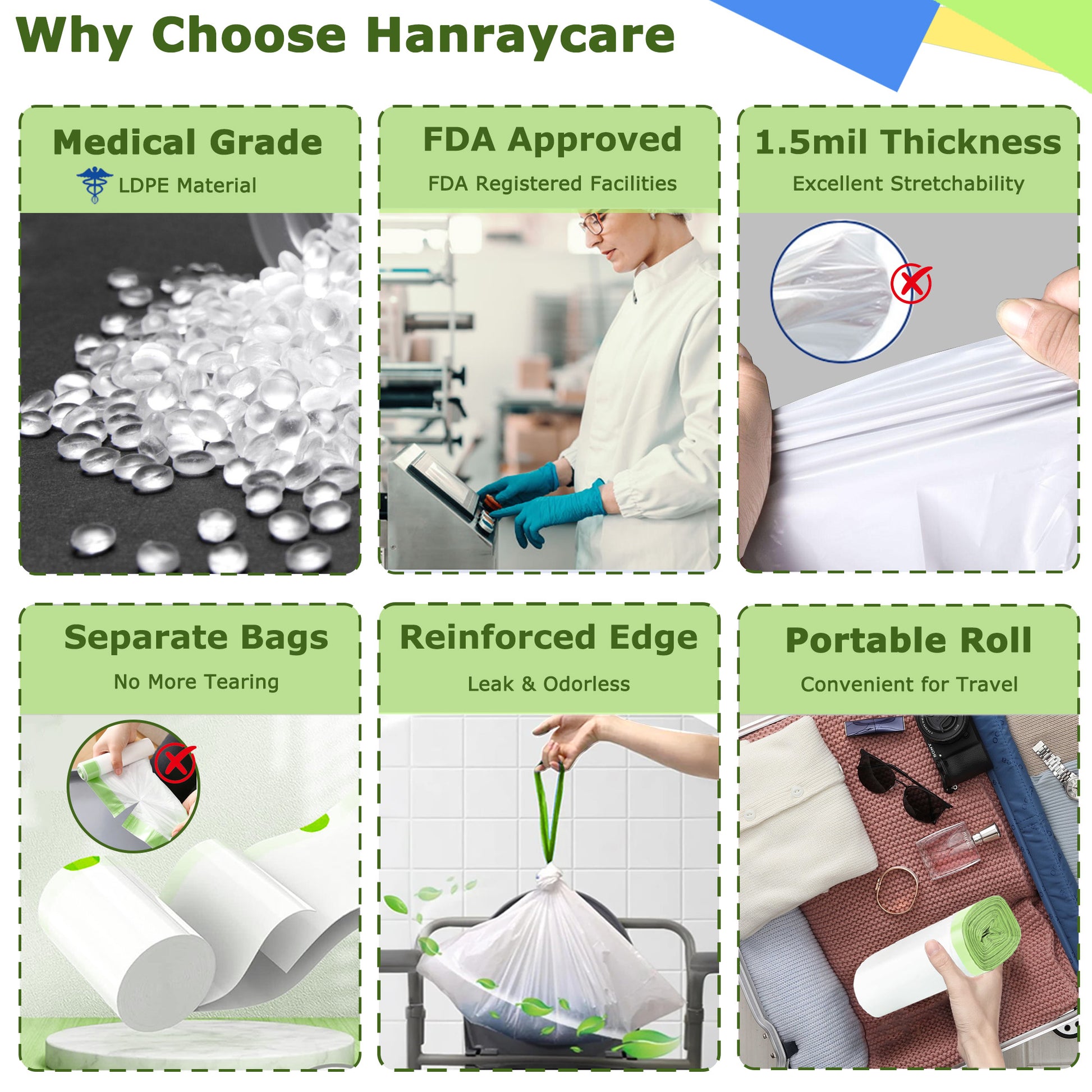 HanrayCare Commode Liners - Disposable Bags for Commode Chairs & Bedpan, Leak-Proof & Universal Fit Portable Potty Liners – Simplify Cleanup for Seniors & Disabled