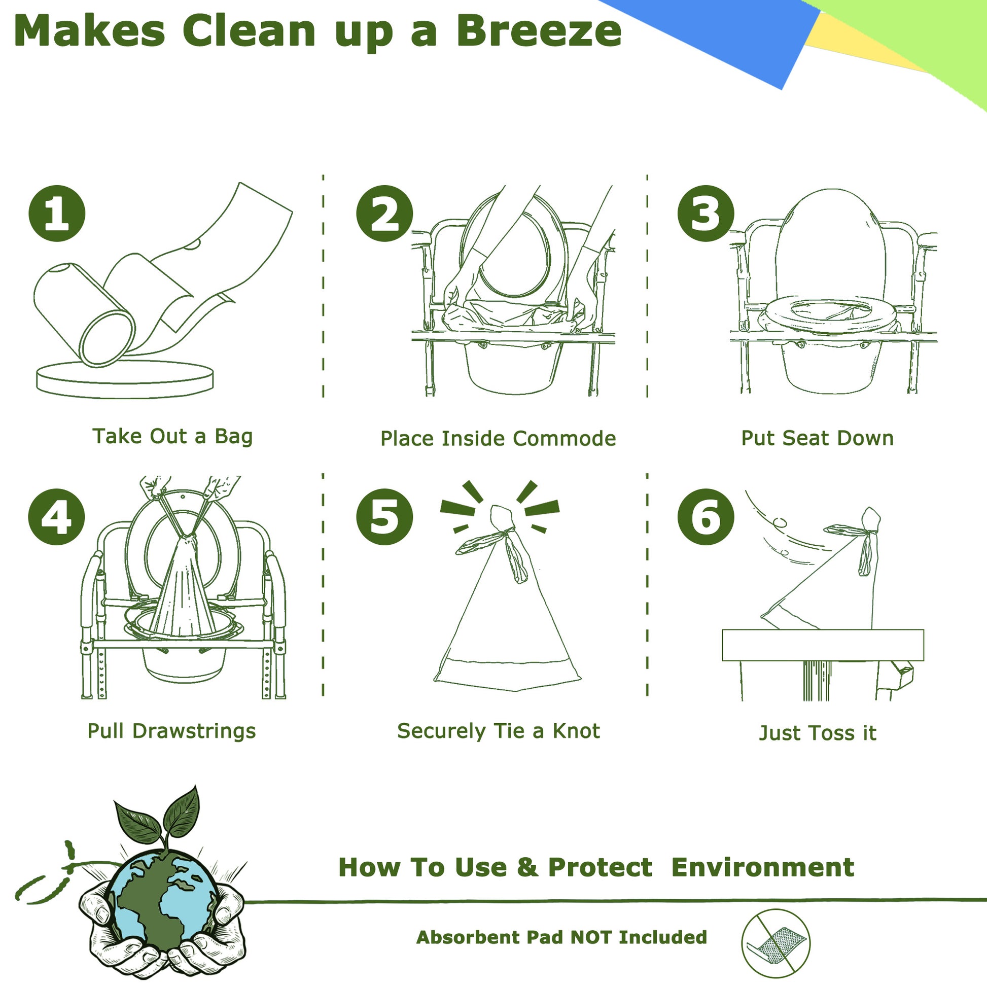 🚽 Convenient Disposal: Effortlessly dispose of waste using these bedside commode liners. Simply remove the bag after use, securely tie it with the drawstring, and discard it like a trash bag, ensuring a clean & hassle-free environment.