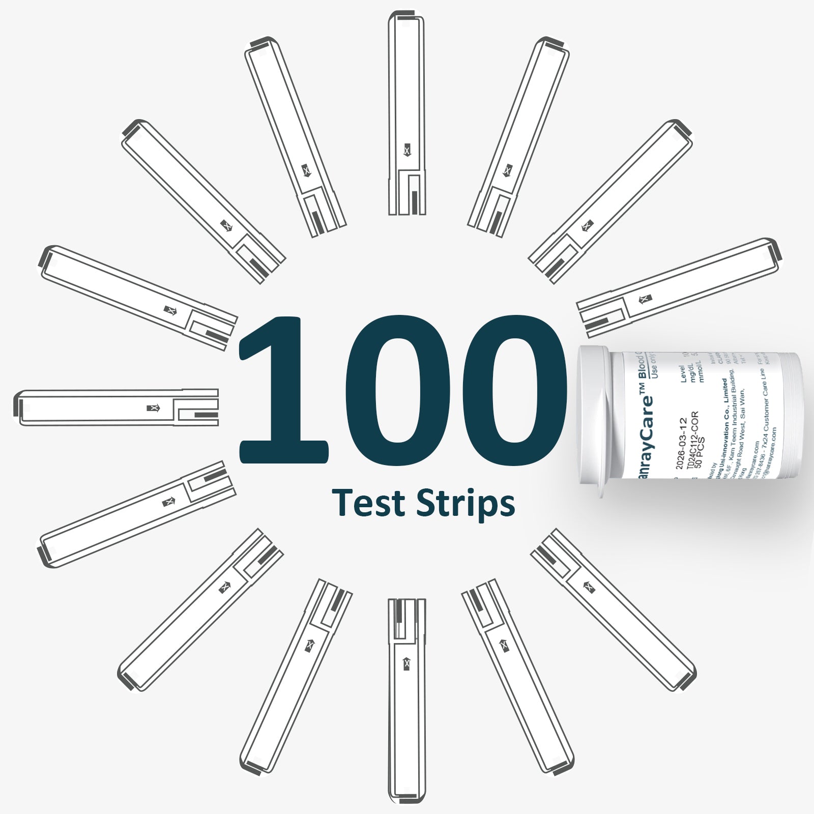 HanrayCare TD-4125 Blood Glucose Test Strips for Diabetes, 100 Count Blood Sugar Test Strips, Designed for Use with HanrayCare Glucose Monitoring System, Accurate Self-testing, No Coding Required