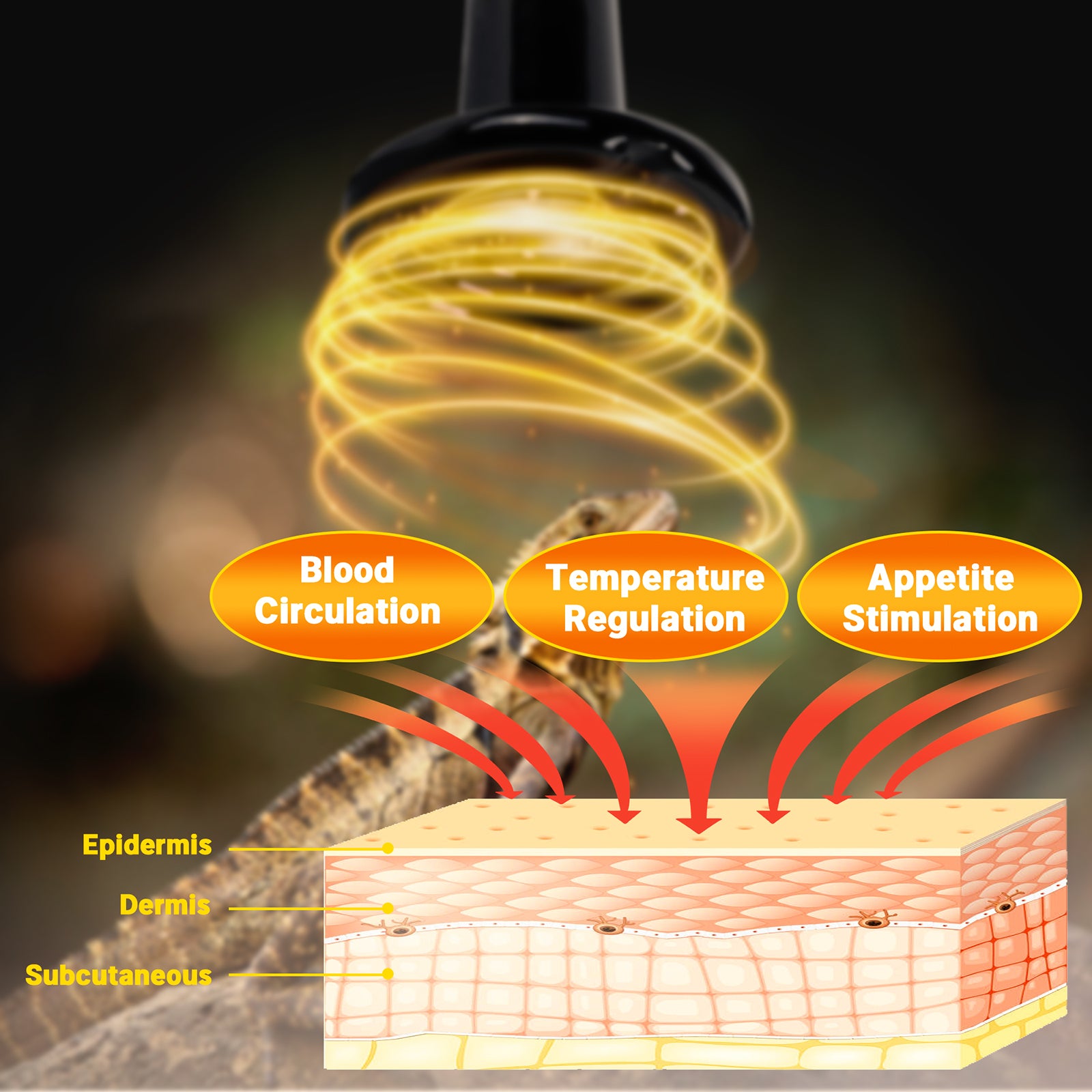 - 🕒 Long Lifespan: Fitting standard E26 lamp sockets for easy installation and boasts an extended rated lifespan of up to 30,000H. Ideal for use in glass enclosures for reptiles, amphibious pets, and poultry incubators to keep hatchlings warm.
