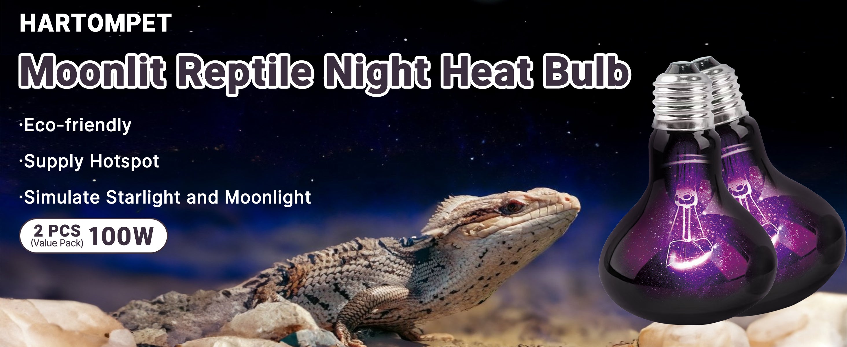 HARTOMPET Reptile Night Light Bulb - Simulated Moonlight & Purple Heat Lamp for Reptiles and Amphibians - Perfect UVA Basking Light for Bearded Dragons, Lizards and Aquatic Tanks