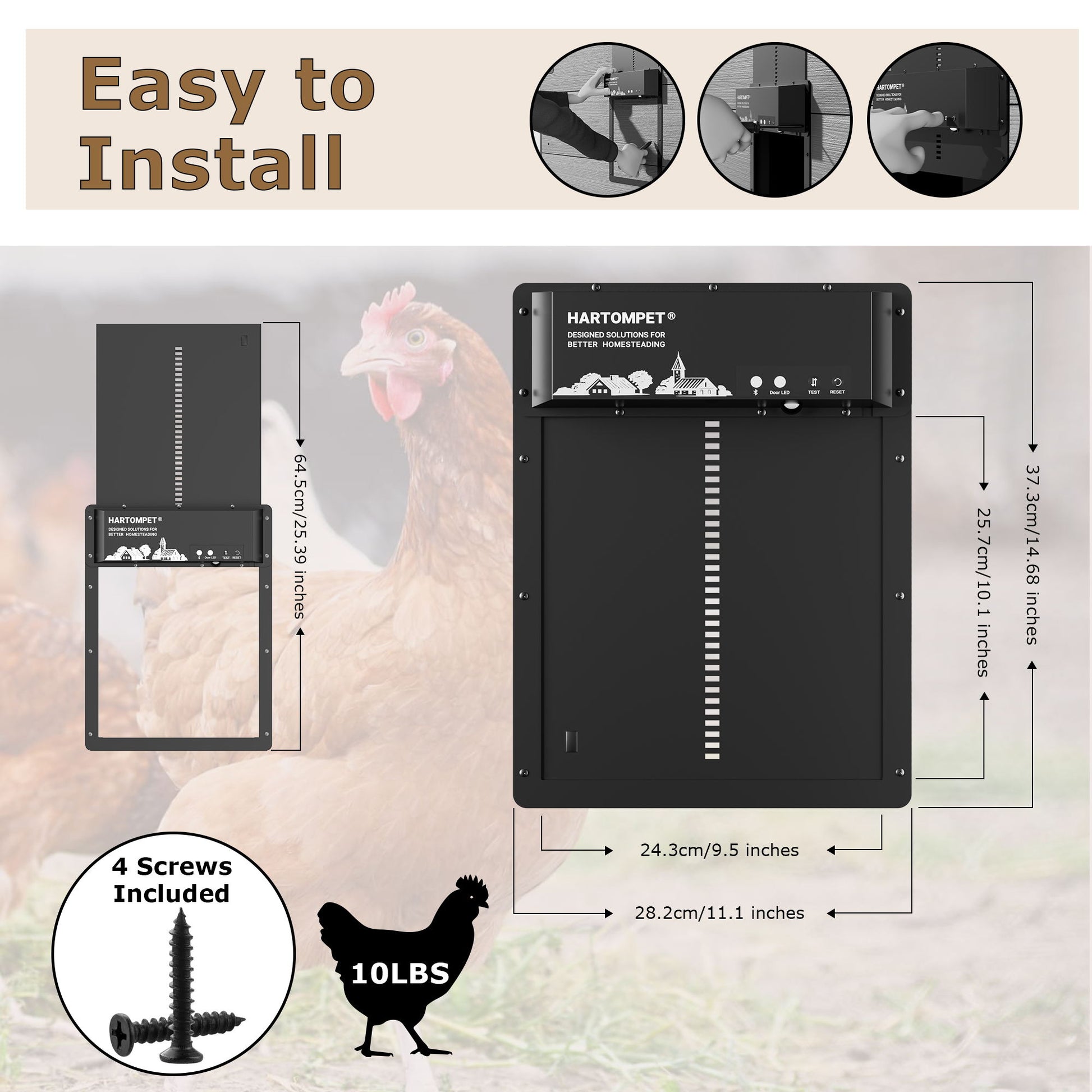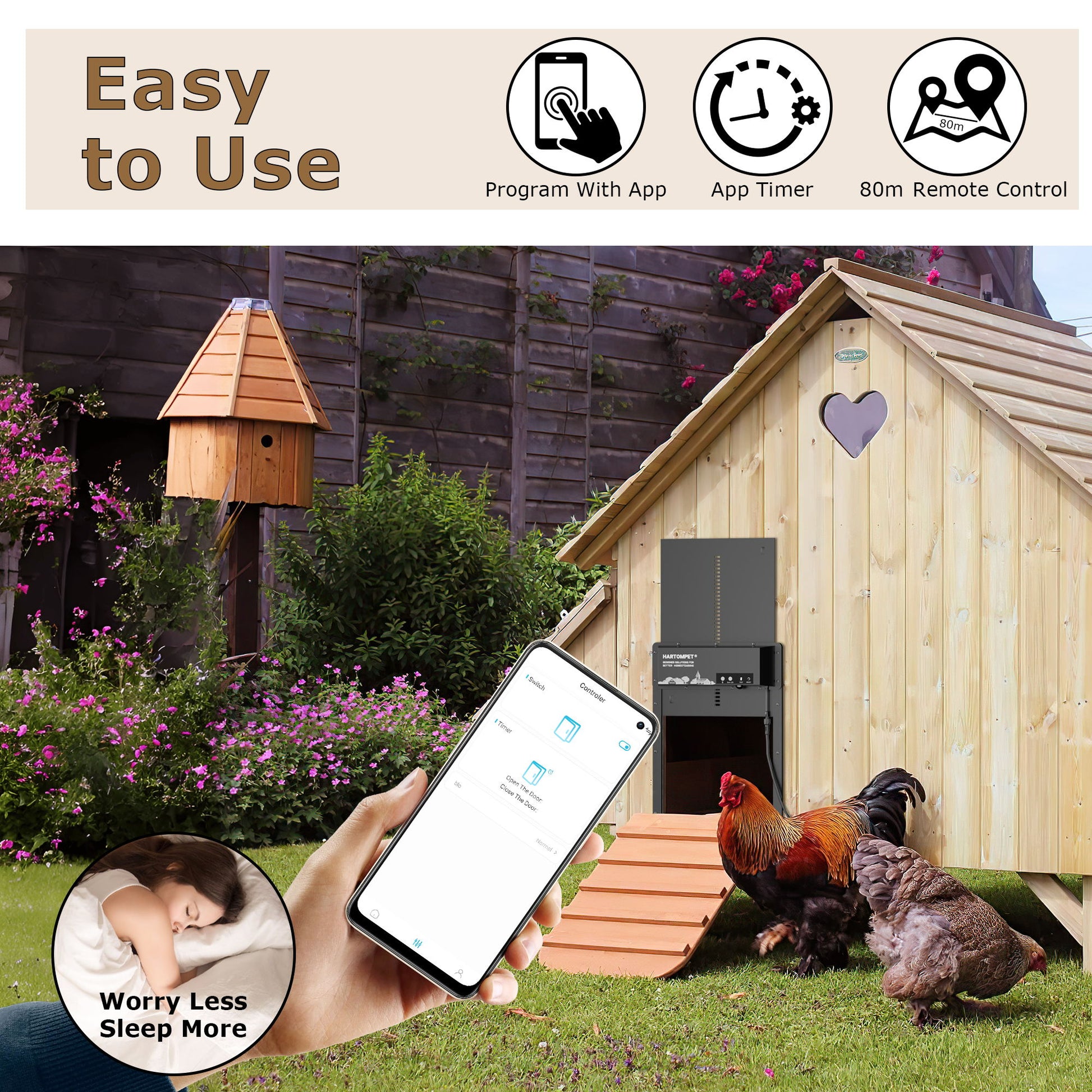 Convenient App Control: The HARTOMPET Smart Coop Door allows seamless management of poultry access anytime, anywhere through our user-friendly smartphone app.